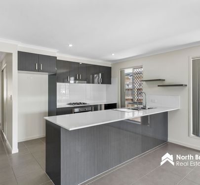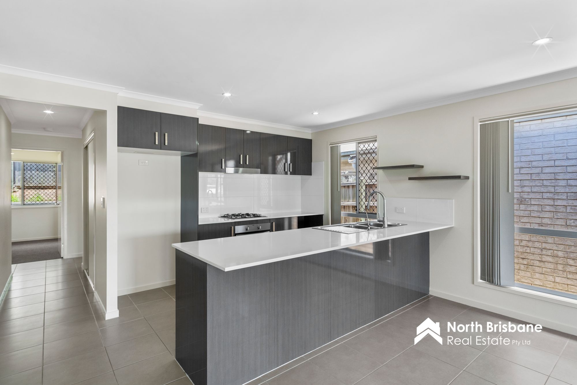 * Ultra modern kitchen with stone benchtops, breakfast bar, gas cooktop & dishwasher