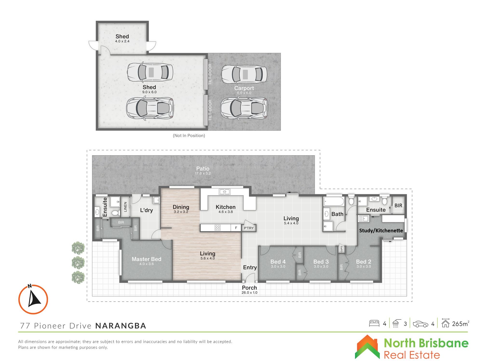 – 6m x 9m shed plus 6m x 6m Carport + Garden shed