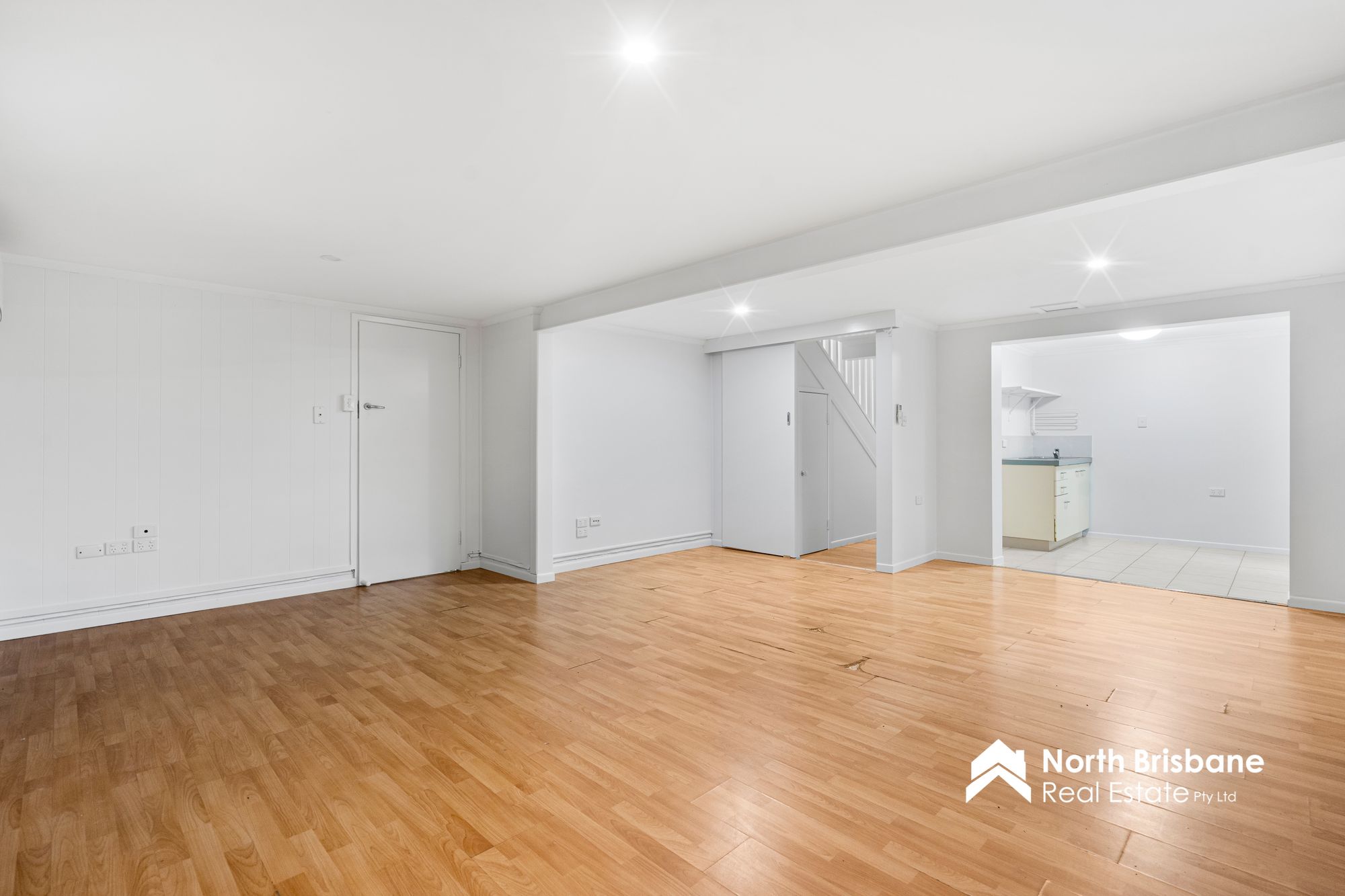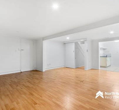 Downstairs offers excellent dual living potential, featuring: