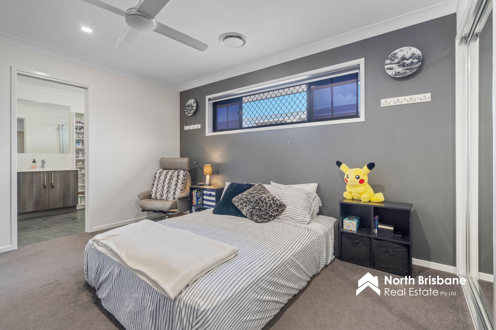 • King size master suite complete with dual vanities & stone benchtop in the ensuite, ceiling fan and triple, mirrored door built in wardrobe