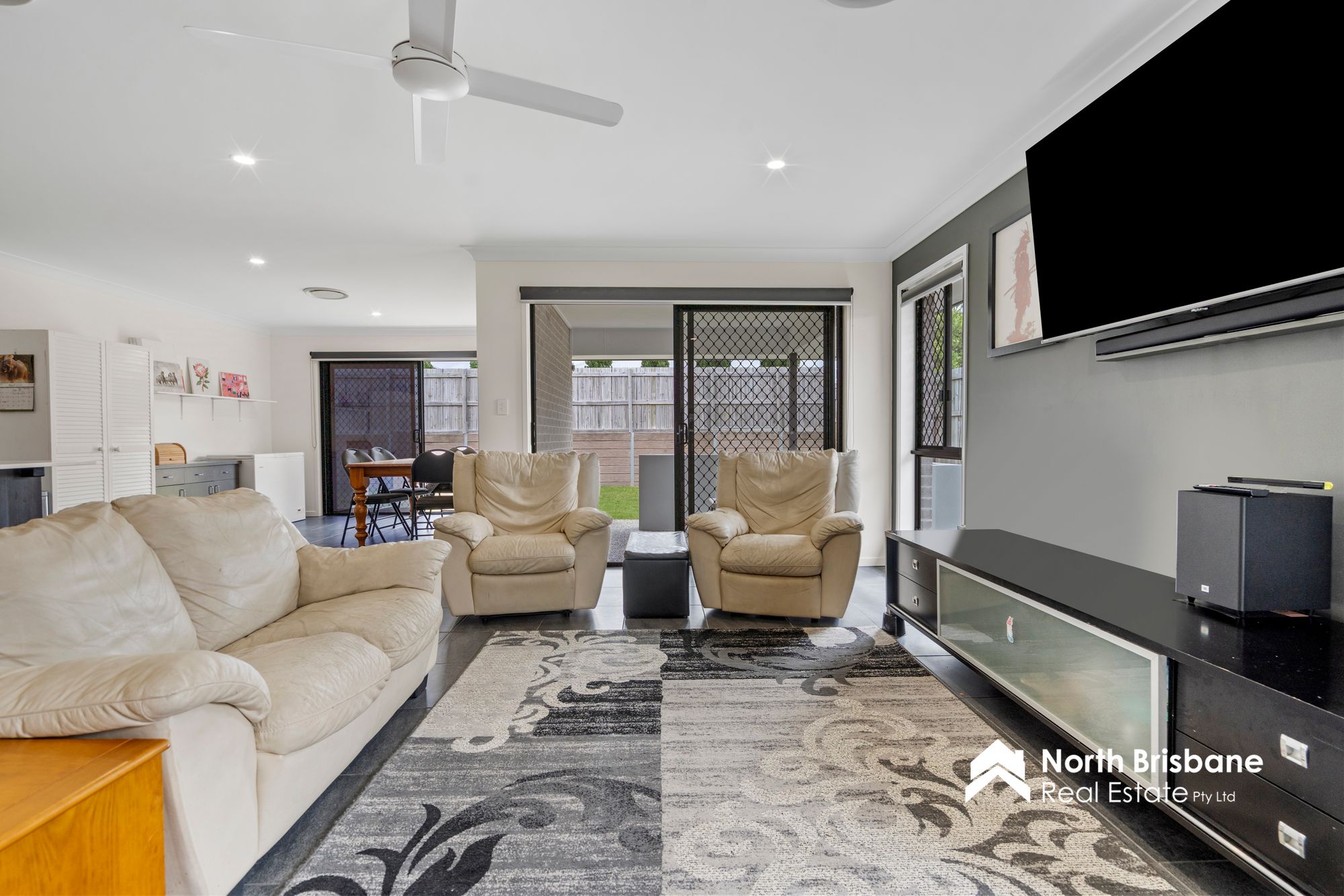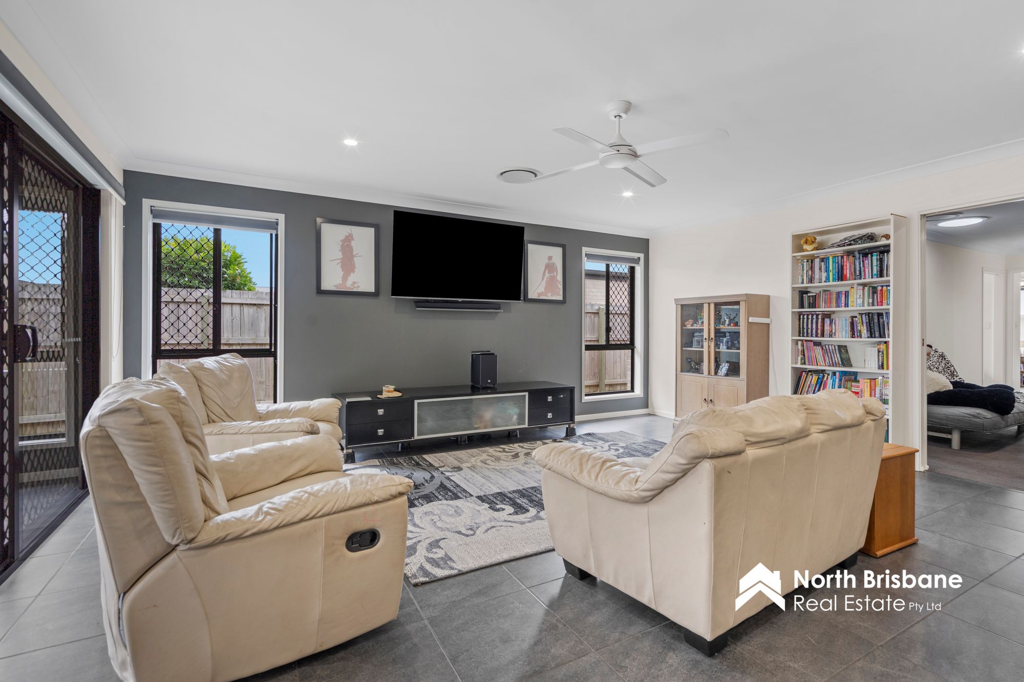 • Ceiling fans, security screens and LED lighting throughout
