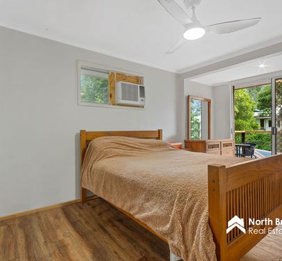 • Generous main bedroom with air conditioning, ceiling fan, balcony access & double mirrored built in wardrobe (king size ready)